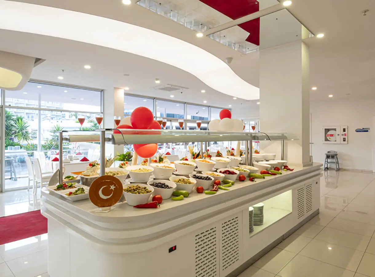 Modern ve sıcak bir atmosferde, taze ve zengin menümüzün ayrıcalıklarıyla tanışmaya davet ediyoruz. Otelimiz herşey dahil sistemde hizmet vermektedir. Misafirlerimiz yerli ve bazı ithal içkiler hizmetlerinden gün boyunca ücretsiz olarak yararlanabilirler.